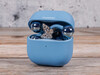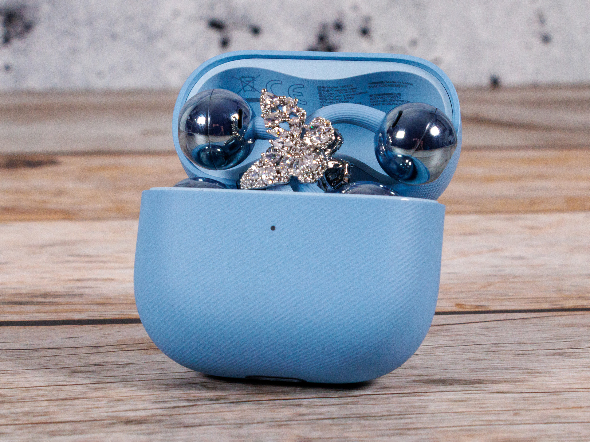 Alternativamente, también hay disponibles joyas de otros proveedores. Para la prueba, recibimos un juego de mariposas brillantes que se sujetan perfectamente a los auriculares. Una desventaja es que hay que quitarlas cada vez que se vuelve a colocar el FreeClip 2 en la funda, ya que de lo contrario no se puede cerrar la tapa. Sin embargo, esto no es un problema si sólo hay un auricular en el estuche.
