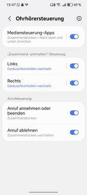 Los controles táctiles en el tallo de los Samsung Galaxy Buds3 FE permiten un control preciso: toque para reproducir/pausar, deslice para el volumen y mantenga pulsado para alternar el modo ANC. Estos gestos son personalizables en la aplicación Galaxy Wearable. La aplicación también permite preajustar el ecualizador, probar el ajuste de las puntas, actualizar el firmware y acceder a las herramientas de IA de Galaxy, como el modo intérprete. El cambio sin problemas entre dispositivos Galaxy funciona a la perfección, pero se echa en falta el multipunto a dispositivos que no sean Samsung.