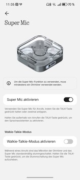 Al realizar llamadas en entornos silenciosos, los auriculares Nada ofrecen un rendimiento decente. Sin embargo, en entornos más concurridos, alcanzan rápidamente sus límites. Aquí es donde entra en juego Super Mic: está optimizado principalmente para llamadas de voz y vídeo y funciona con aplicaciones populares como Zoom, Teams, Google Meet, WhatsApp y WeChat. Para grabar, es compatible con aplicaciones nativas de notas de voz (por ejemplo, iOS Voice Memos) y aplicaciones de vídeo de terceros como Blackmagic. No está optimizado para los mensajes de voz in-app (por ejemplo, WhatsApp, WeChat, Snapchat) ni para la grabación de vídeo estándar en Android / iOS, donde se utilizan en su lugar los micrófonos del smartphone. Durante las llamadas telefónicas, el micrófono adicional con cancelación de ruido de la carcasa reduce el ruido ambiente al mínimo, y el gran micrófono de voz garantiza una claridad excelente y es ideal para la comunicación.