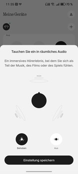 El ANC es bastante eficaz e incluso en un avión, el ruido ambiente se amortigua correctamente. Sin embargo, sin reproducción multimedia, el ruido de fondo es claramente audible y el volumen del Oído (3) debe ser a veces muy alto para que el contenido sea claramente comprensible. La calidad del sonido también es más débil durante un vuelo con el ANC activado.