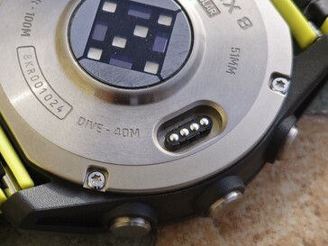 Debido a su gran autonomía, los largos tiempos de carga del Fenix 8 Solar no son muy significativos. Sin embargo, este es un punto negativo, ya que se tarda alrededor de 1,5 horas en llenar la batería del 22% al 100%. El sistema de carga mediante una conexión de enchufe tampoco es ideal en nuestra opinión. La carga inalámbrica debería ser posible para un reloj tan caro. Sin embargo, el fabricante instala esta conexión en todos sus modelos, lo que al menos parece sostenible.