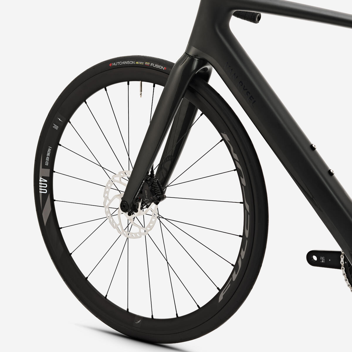 Como su nombre indica, la Van Rysel E-EDR CF tiene un cuadro y una horquilla de carbono. La bicicleta está propulsada por un motor Mahle X20 de 55 Nm, que pesa sólo 1,4 kg (~3,1 libras). Estos dos componentes contribuyen a que la e-bike pese 12 kg (~26 lbs); a modo de comparación, la Van Rysel E-EDR AF con su cuadro de aluminio pesa 14 kg (~31 lbs). Una batería de 350 Wh le permite circular con asistencia hasta 150 km (~93 millas), y existe un extensor opcional de 171 Wh para una autonomía de hasta 200 km (~124 millas). El modelo también cuenta con una transmisión electrónica Shimano 105 Di2 2x12S, frenos de disco hidráulicos Shimano 105, neumáticos Hutchinson Fusion 5 Performance 700x28 y conectividad Bluetooth y ANT+.