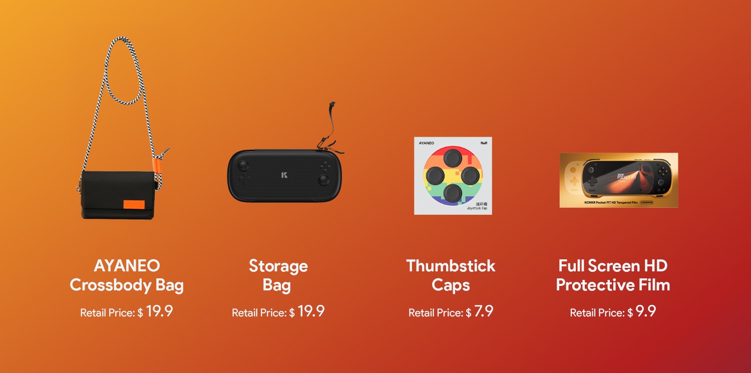 Mientras que el cupón de 15 dólares se aplica a los pedidos anticipados del Snapdragon G3 Gen 3 y Snapdragon 8 Elite del Konkr Pocket, aquellos que respaldaron el Pocket Fit Elite (versión Snapdragon 8 Elite), recibirán un pack de regalo además del cupón. El paquete de regalo incluye una bolsa de almacenamiento Pocket Fit por valor de 19,99 dólares, tapas para los pulgares por valor de 7,99 dólares, una bolsa crossbody Ayaneo por valor de 19,99 dólares y una película protectora HD de pantalla completa por valor de 9,99 dólares.