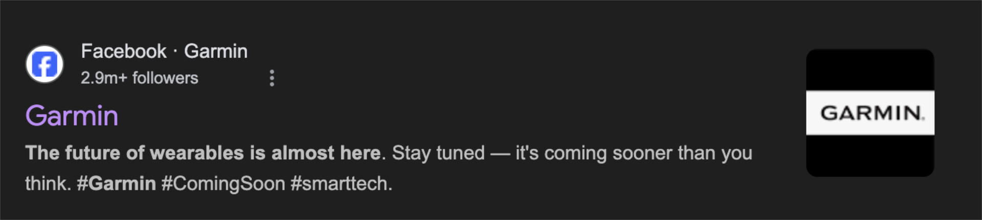 Ahora, una reciente publicación en el Facebook de Garmin India ha encendido nuevas especulaciones de que la empresa está desarrollando algún tipo de alternativa al Whoop. Bautizada como Garmin Recovery Band por the5krunner y Gadgets & Wearablesentre otros, el desconocido dispositivo no se menciona por su nombre en la publicación de Garmin en Facebook. En su lugar, la empresa se burla de que "el futuro de los wearables está casi aquí" y añade que "llegará antes de lo que cree".