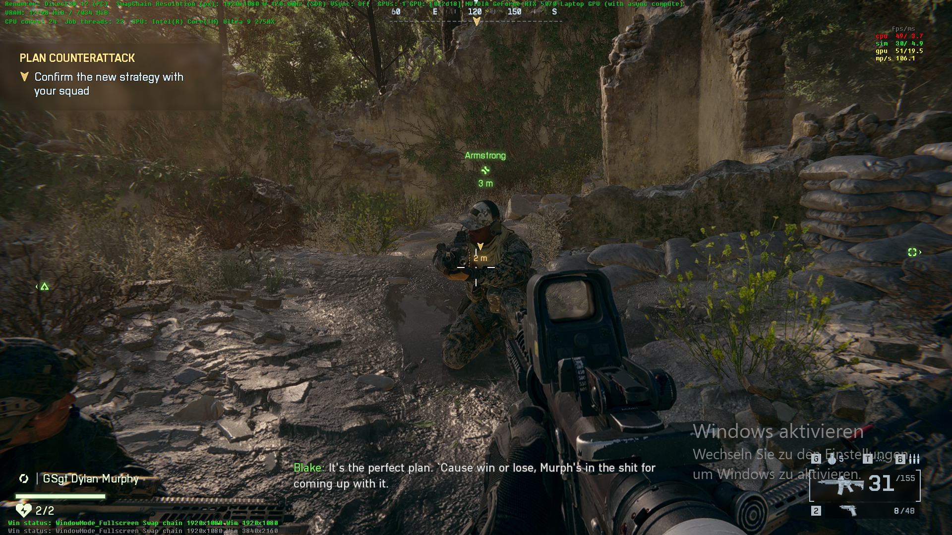 Si cambia a la resolución QHD, el juego mostrará un mensaje de advertencia de VRAM y también podemos ver que la VRAM se llena durante la ejecución del benchmark e incluso supera los 8 GB. Esto da lugar a tartamudeos aislados, pero para ser sinceros, no es un gran problema para este tipo de juego. Además del benchmark, también jugamos a la campaña con estos ajustes (sin DLSS) y realmente no notamos ningún tartamudeo grave que afectara a nuestra experiencia de juego.