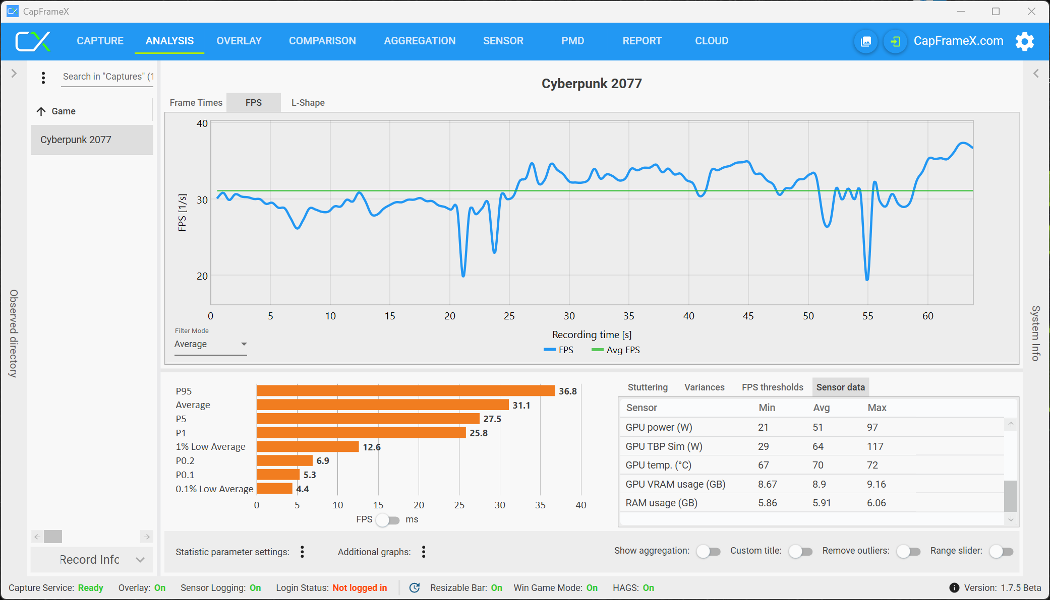 Sin embargo, nuestro principal objetivo en este artículo no es el rendimiento puro, sino si la cantidad disponible de VRAM se traduce en limitaciones a la hora de jugar, como tartamudeos o caídas de fotogramas o pérdidas de rendimiento cuando se juega durante periodos más largos. Además de los puntos de referencia integrados, registramos y analizamos principalmente las cifras de rendimiento con la herramienta CapFrameX. Comenzamos nuestras pruebas con el portátil RTX 5070 (8 GB de VRAM) y luego cambiamos al portátil RTX 5070 Ti con 12 GB de VRAM cuando notamos problemas.
