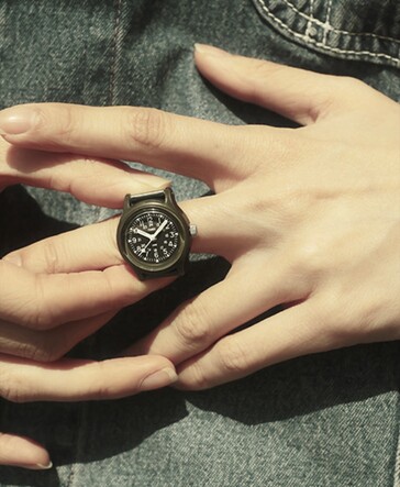 Al parecer, la marca de moda japonesa Beams quiere aprovechar el éxito del Casio Ring Watch y del Timex x MM6 Ring Watch. El último reloj de anillo se basa en un reloj de pulsera clásico Timex Camper(43 dólares en Amazon), por lo que utiliza una esfera analógica en lugar de digital.