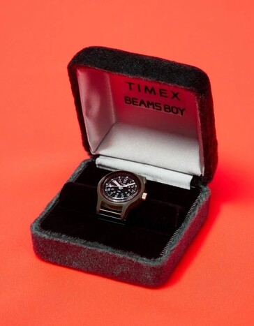 Esto se debe a que está fabricado en acero inoxidable y los elementos individuales están unidos por una banda elástica. Esto debería hacer que el Reloj Anillo sea adecuado para los dedos en los que habitualmente se lleva un anillo de las tallas estadounidenses 9 a 15. Sin embargo, no es posible quitar un eslabón de la pulsera para hacerlo apto para dedos aún más pequeños. El Timex x Beams Boy Ring Watch se lanzará en abril para celebrar el 50 aniversario de la primera tienda Beams en Harajuku, Japón.