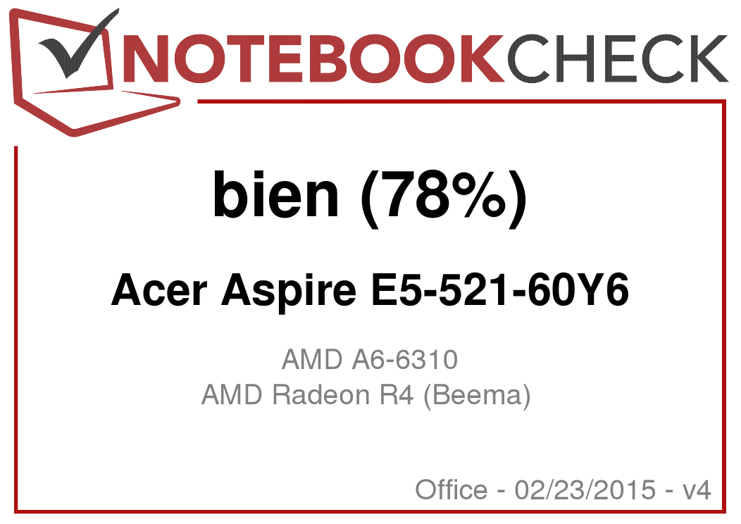 Los compradores que busquen un portátil de oficina asequible de 15.6" no errarán con el Aspire E5-521-60Y6. El portátil ofrece potencia de cálculo suficiente para la rutina diaria. Además, apenas se calienta y está siempre en silencio, y trae dispositivos de entrada decentes y una buenísima duración de batería. El dueño no necesitará pronto más capacidad de almacenamiento gracias al HDD de 1 TB. No hay que desdeñarlo: Acer incluye una garantía de dos años, lo que no es el estándar del sector low-cost. Por desgracia, Acer se pega un tiro en el pie con la pantalla instalada, y evita así una mejor valoración. Sólo puede ofrecer un brillo bajísimo y un bajo contraste. Al menos es un modelo con superficie mate.