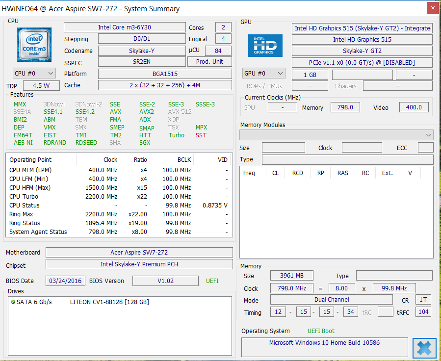 | Acer Aspire Switch 12S SW7-272-M3A0 6Y30, HD Graphics 515 | Lenovo IdeaPad Miix 700 6Y54, HD Graphics 515 | HP Elite x2 1012 G1 6Y54, HD Graphics 515 | Samsung Galaxy Tab Pro S W700N 6Y30, HD Graphics 515 | Microsoft Surface Pro 4, Core m3 6Y30, HD Graphics 515 | Microsoft Surface Pro 4, Core i5, 128GB 6300U, HD Graphics 520 | Acer Aspire Switch 12 SW5-271-61X7 5Y10c, HD Graphics 5300 | Acer Aspire Switch Alpha 12 SA5-271-56HM 6200U, HD Graphics 520 | |