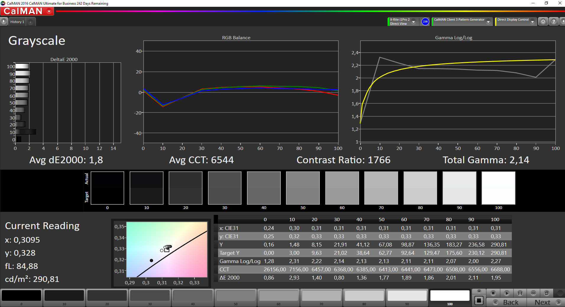 ΔE Greyscale Calman: 1.8 | ∀{0.09-98 Ø5}