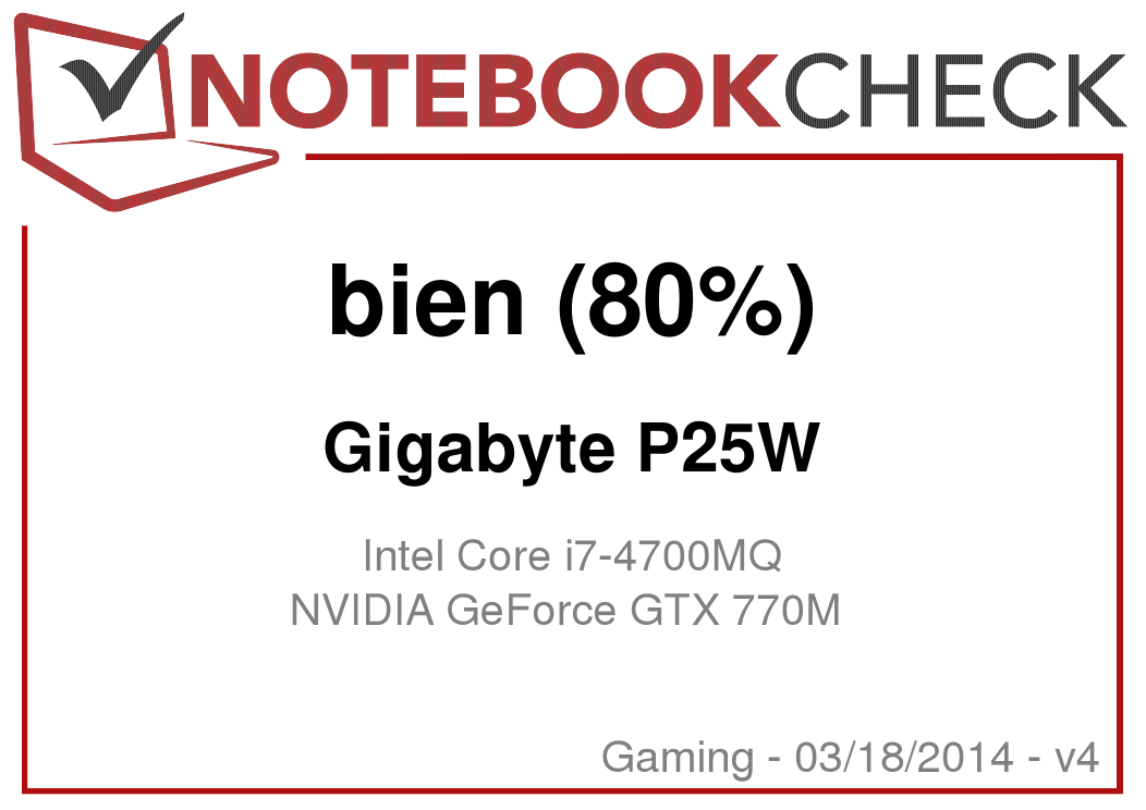 Un portátil de 15.6" con soporte Full HD, y montones de potencia es una invitación para jugar fuera de casa. La pantalla es muy brillante, y su reproducción del color es muy buena. Junto con un peso moderado de 2870 gramos, el P25W es perfectamente adecuado para el juego móvil. Otros portátiles premium suelen pesar mucho más de 3.5 kg. Aparte de eso, la configuración de un Intel Core i7-4700MQ, y una GeForce GTX 770M está muy bien elegida. La carcasa también causa una impresión de gran calidad.