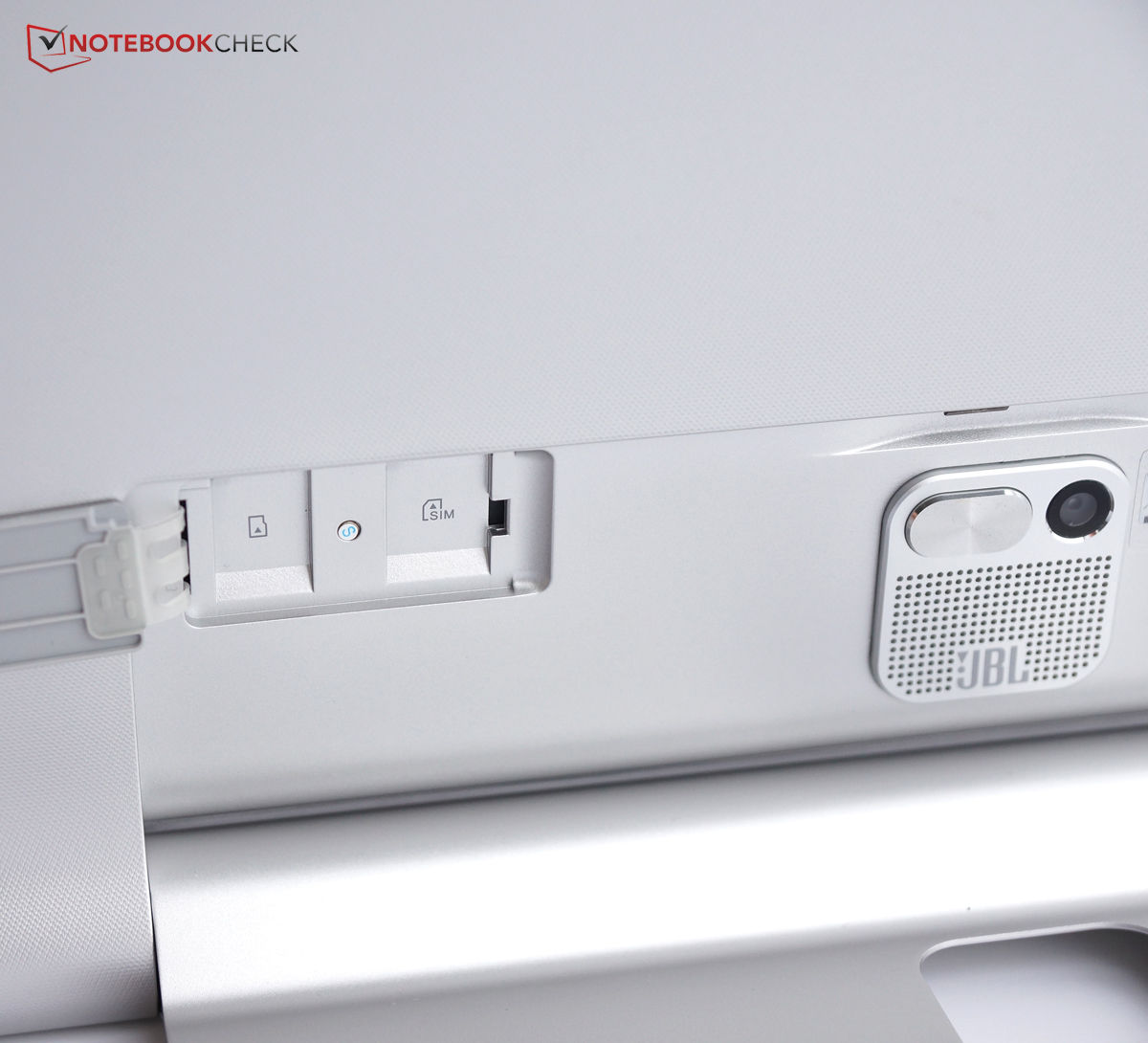 La barra de sujeción (cilindro) evita que el Yoga Tablet 2 Pro pase por delgado, pero tiene muchas ventajas. El atril incorporado es una característica tan genial como la propia barra de sujeción que da al usuario un agarre seguro. Una segunda TV pequeña se vuelve algo superfluo ya que el Yoga Tablet 2 Pro se puede colgar de una pared. Lenovo no se queda sin buenas ideas y las implementa consistentemente, lo que es algo de por sí extraordinario.