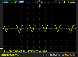 La retroiluminación del display parpadea a 235.8 Hz (seguramente usa PWM - Pulse-Width Modulation) . La frecuencia de 235.8 Hz es relativamente baja, por lo que la gente sensible debería ver parpadeos y padecer fatiga visual por la pantalla (usado al brillo indicado a continuación). Comparación: 53 % de todos los dispositivos testados no usaron PWM para atenuar el display. Si se usó, medimos una media de 8111 (mínimo: 5 - máxmo: 343500) Hz. | |||