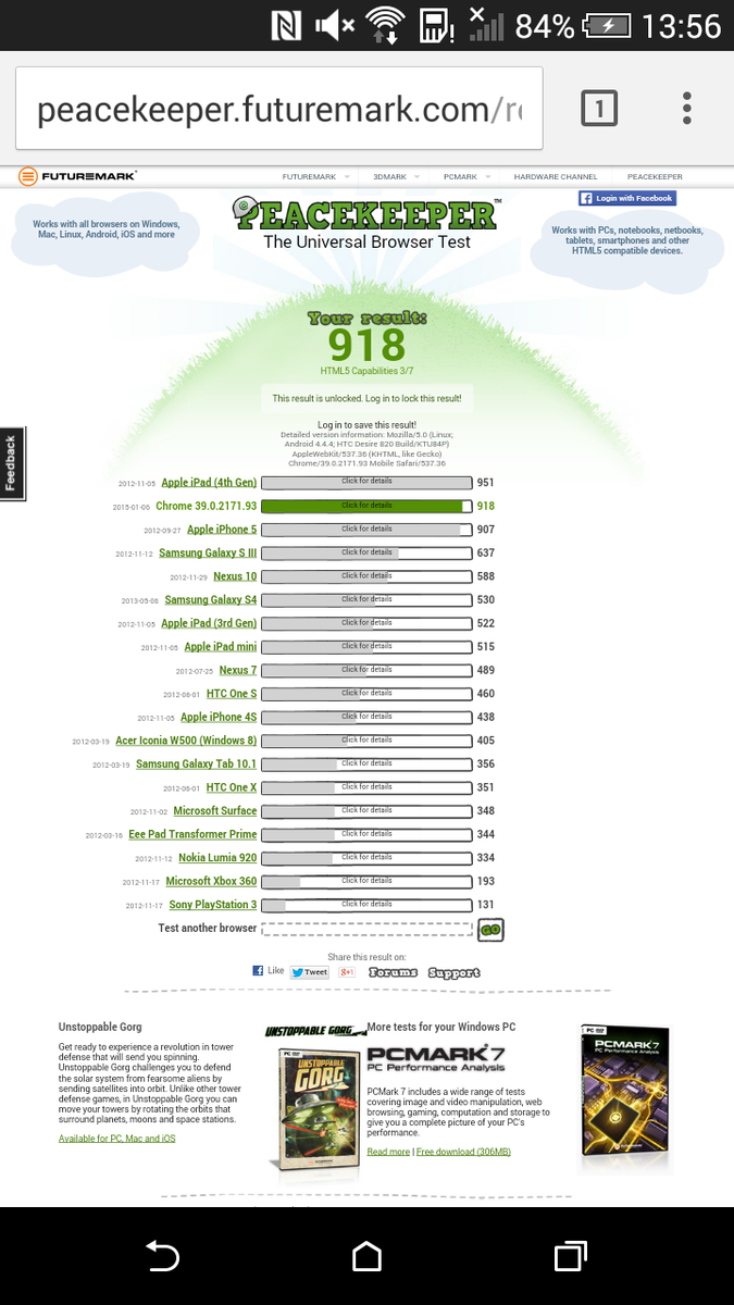El HTC Desire 820 es la progresión lógica y el sucesor del Desire 816. Como tal, hace bien su labor: el smartphone viene equipado con un sobresaliente display, una veloz CPU y cámaras usables. El SoC ofrece el mismo rendimiento independientemente del nivel de carga y está basado en un diseño 64-bit, lo que podría ser una ventaja cuando salga la correspondiente actualización Android.