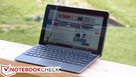 La lista de advertencias empieza con las restricciones de rendimiento; si bien el SoC Atom Z3770 es ciertamente mucho más potente que la generación anterior de estos chips, sigue quedando por detrás de una CPU Core i5 ULV comparable. Lo mismo se puede decir del dispositivo de almacenamiento eMMC de Samsung, que palidece en comparación con los modernos SSDs de hoy día. Por suerte, estas dos preocupaciones se pueden resolver con tan solo subir a una configuración i3 (y añadiendo el teclado acoplable), o quizá a un modelo i5, que incluye SSD en vez del eMMC y lleva un precio en torno a los $1,049 PVR (comparable al del Surface Pro 3 de similar equipación, $999). La unidad también es algo pesada para ser un tablet, incluso con su construcción principalmente de plástico. Por último, se calienta bastante bajo carga. Los que estén interesados en algo más pequeño con unos pocos sacrificios clave quizá se vean más tentados por el Dell Venue 8 Pro, que tiene una configuración similar pero una calidad inferior de pantalla, falta de salida de vídeo y de USB, duración de batería más corta y sin posibilidad de acoplamiento físico —todo por unos $229 PVR.