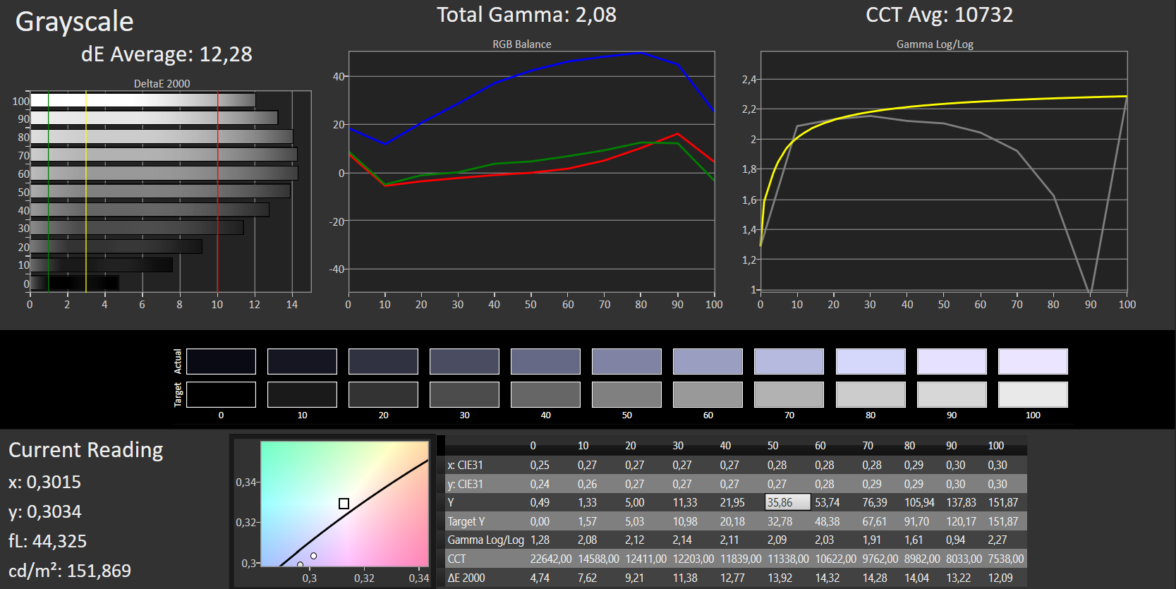 ΔE Greyscale Calman: 12.28 | ∀{0.09-98 Ø5}