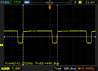 La retroiluminación del display parpadea a 2232 Hz (seguramente usa PWM - Pulse-Width Modulation) a un brillo del 20 % e inferior. Sobre este nivel de brillo no debería darse parpadeo / PWM. La frecuencia de 2232 Hz es bastante alta, por lo que la mayoría de gente sensible al parpadeo no debería ver parpadeo o tener fatiga visual. Comparación: 53 % de todos los dispositivos testados no usaron PWM para atenuar el display. Si se usó, medimos una media de 8111 (mínimo: 5 - máxmo: 343500) Hz. | |||