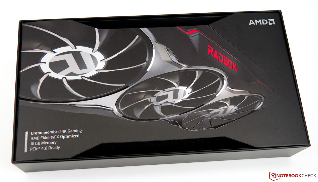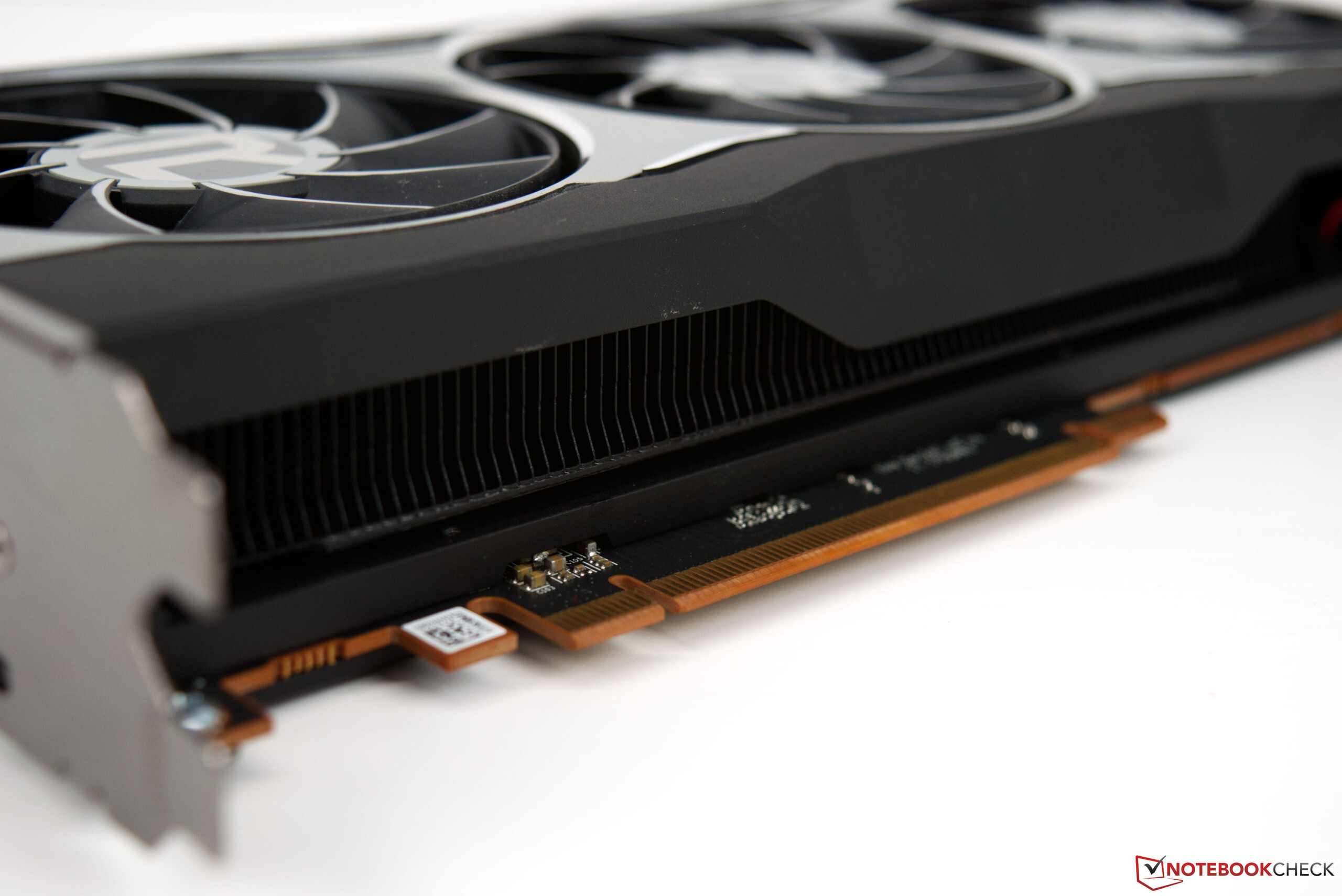 En cuanto al consumo de energía, la AMD Radeon RX 6800 es igual de económica que la AMD Radeon RX 6700 XT. En comparación con el desarrollo actual de los TGP de las GPU de gama alta, el TGP de este modelo, de 250 vatios, es bastante modesto. La calidad de construcción del modelo de referencia es excepcionalmente alta. Las placas delantera y trasera son de metal y ofrecen una gran háptica. La tarjeta gráfica está adornada con las letras "Radeon" iluminadas. AMD recomienda fuentes de alimentación de al menos 650 vatios. Para las pantallas, la AMD Radeon RX 6800 ofrece un puerto HDMI, dos DisplayPorts y un puerto USB tipo C