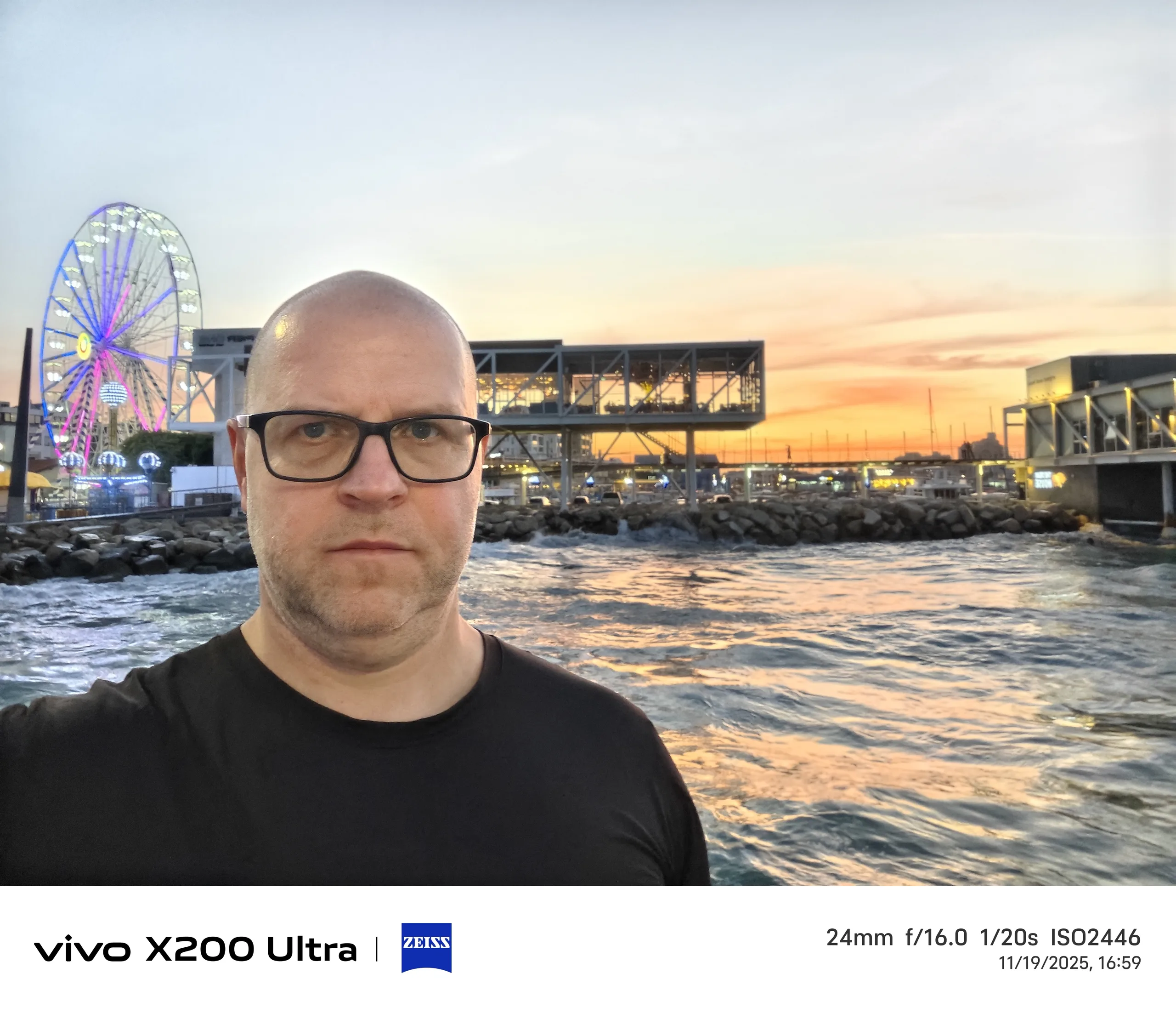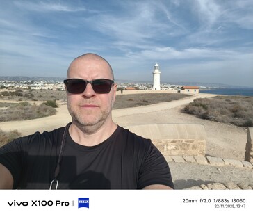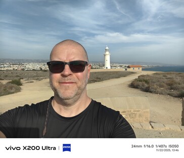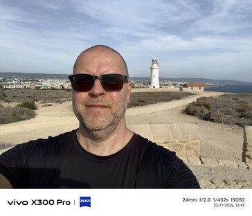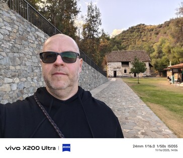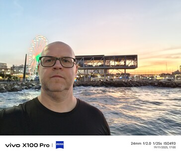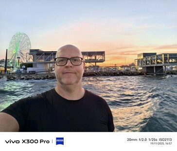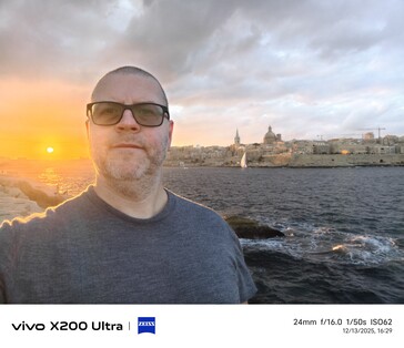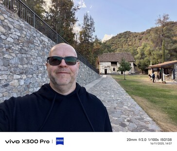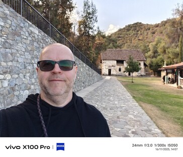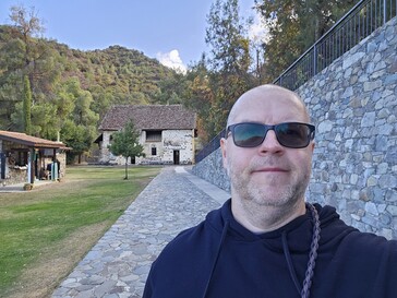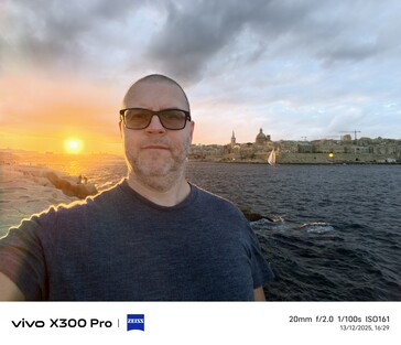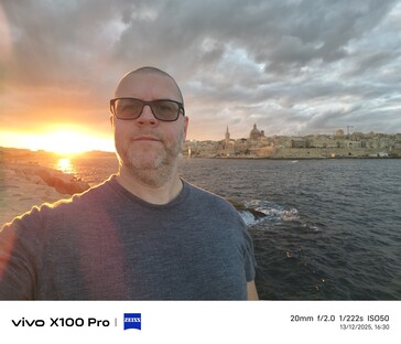 No soy precisamente un gran aficionado a los selfies, pero en aras de la ciencia, me tomé unos cuantos selfies en varios lugares y bajo diferentes condiciones de iluminación. En mi opinión, el Vivo X300 Pro ha mejorado significativamente en términos de calidad selfie en comparación con el Vivo X200 Ultra. En la mayoría de los casos, el último buque insignia de Vivo ofrece la imagen de aspecto más natural del cuarteto, no solo gracias a su campo de visión notablemente más amplio, sino también en términos de tonos de piel, al menos en mi caso. Sin embargo, en el último ejemplo, con la puesta de sol sirviendo como fuente de luz de fondo, el Vivo X300 Pro también lucha un poco.