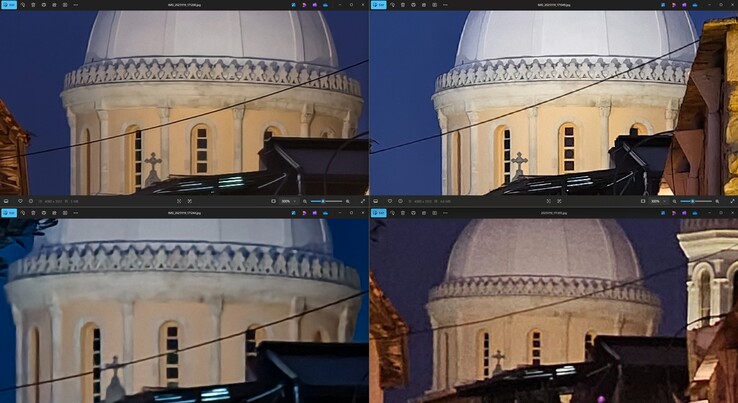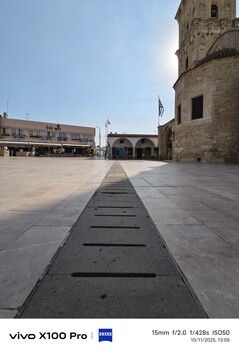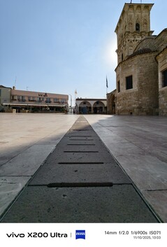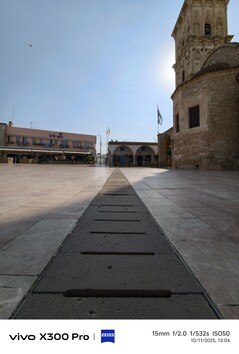La iglesia de San Lázaro en Lárnaca sirvió como sujeto de referencia para la primera comparación ultra gran angular entre los modelos Vivo. Pido disculpas por los ángulos de disparo ligeramente diferentes en cada caso, pero el ganador debería estar bastante claro a pesar de todo. La Vivo X200 Ultra no sólo ofrece el campo de visión más amplio y es el único modelo capaz de capturar la iglesia en su totalidad, sino que su representación de los detalles más lejanos es también claramente la más nítida. Por tanto, incluso a la luz del día, es la clara ganadora a 300× aumentos, aunque la Vivo X300 Pro sigue siendo notablemente mejor que la Vivo X100 Pro.