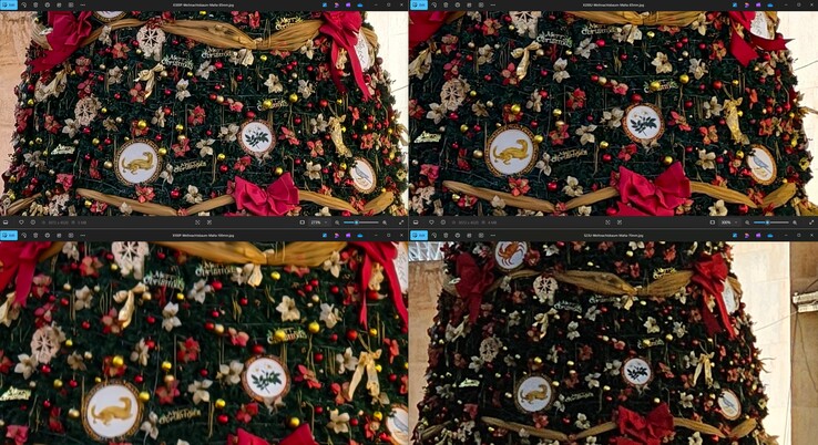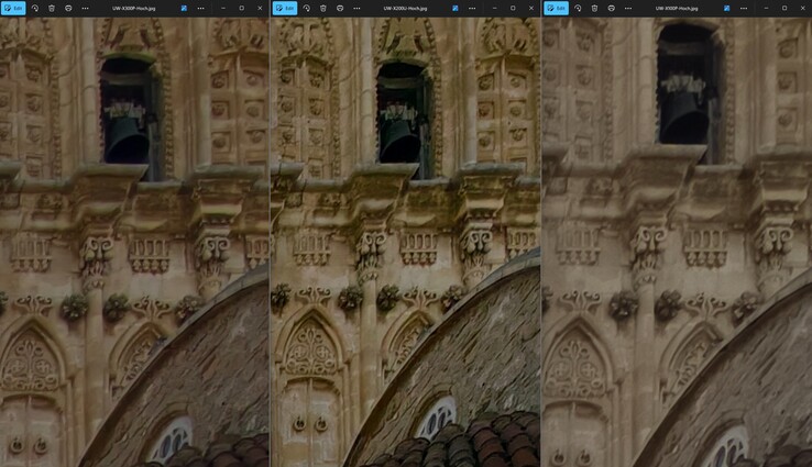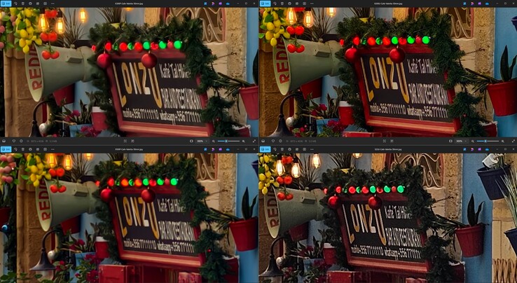 Al hacer un zoom del 300 por ciento en las imágenes de 12 megapíxeles, el sensor de 200 megapíxeles del Galaxy S23 Ultra es el que conserva menos detalles. El Vivo X200 Ultra sale por poco por delante del Vivo X100 Pro, lo que demuestra que el sensor de 1 pulgada sigue teniendo ventaja aquí. Al menos, el Vivo X300 Pro no termina en último lugar.