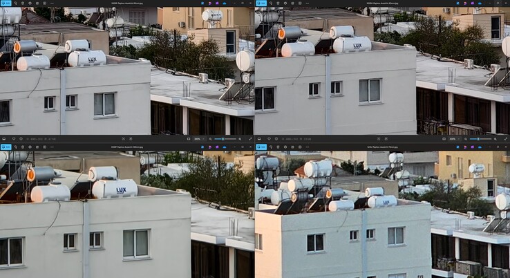 El ISOCELL HP2 resulta aquí especialmente decepcionante. Aún se utiliza en la actual Galaxy S25 Ultramuestra un ruido pronunciado en la vista detallada, por ejemplo en el cielo.