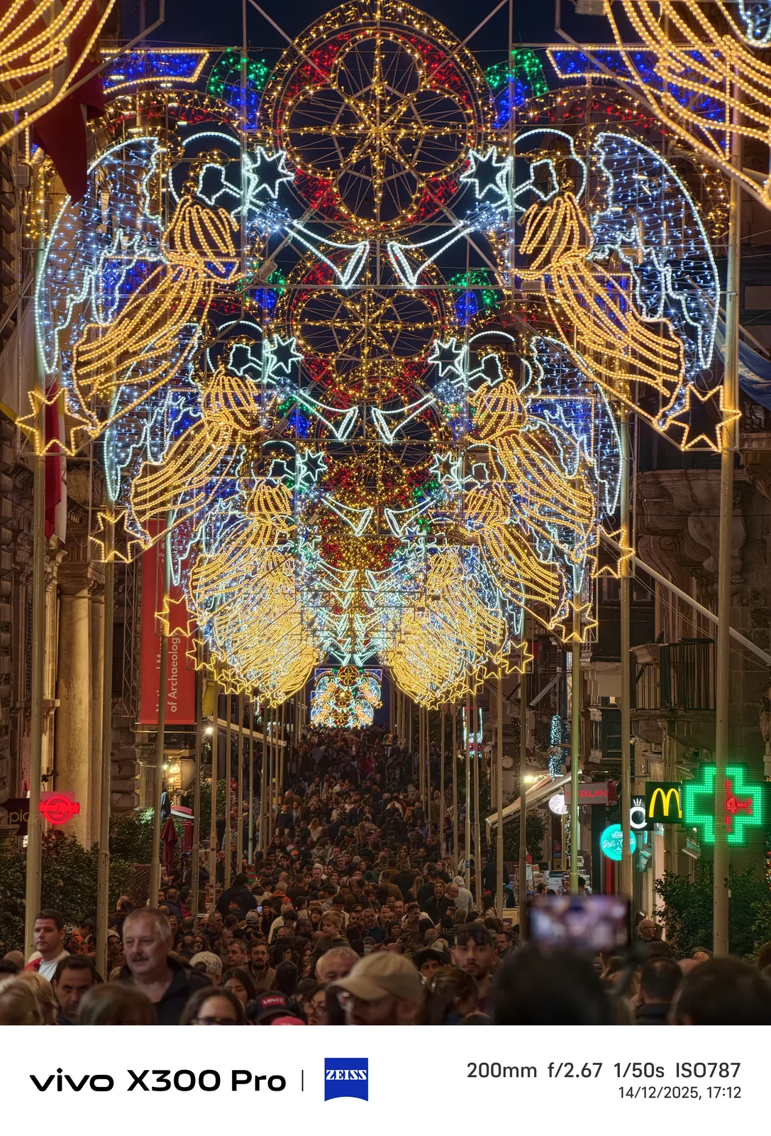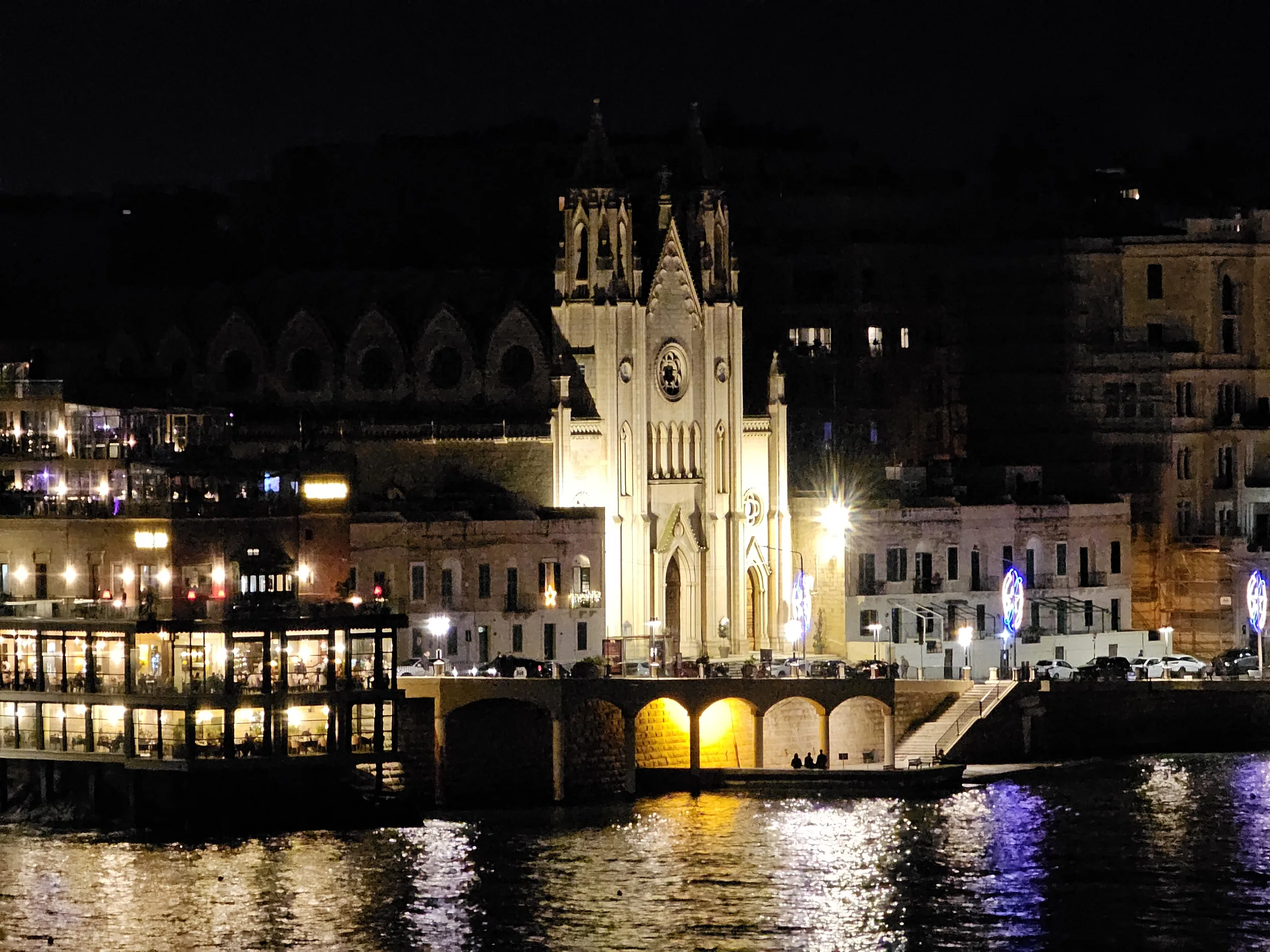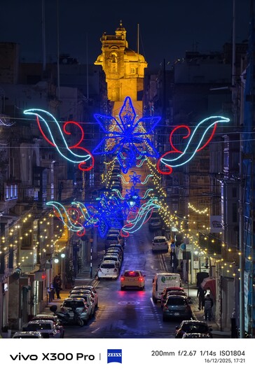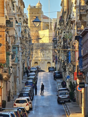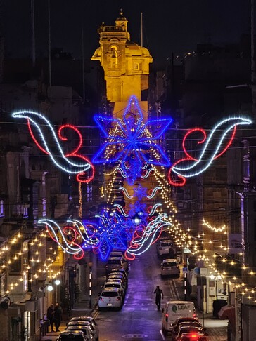 Malta antes de Navidad es una experiencia especial. En lugar de nieve, muchas partes de la ciudad presentan calles con una iluminación navideña a veces muy elaborada, lo que también permite realizar una buena prueba en modo nocturno cámara en mano; por ejemplo, en Triq Il-Vitorja en Senglea o a lo largo de la arteria principal de La Valeta, que estaba abarrotada por la noche. Son condiciones bastante difíciles para una prueba con un zoom 10x. Con un trípode, por supuesto, habría sido posible lograr resultados significativamente mejores.