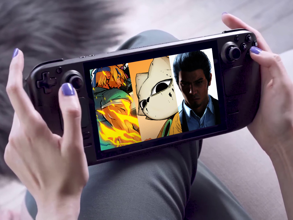 - Como un dragón Gaiden: El hombre que borró su nombre - un juego beat 'em up aclamado por la crítica con elementos de RPG y una narrativa interesante. Salió a la venta en 2023, cuesta en general 49,99 $ y cuenta con la etiqueta Steam Deck Verified.