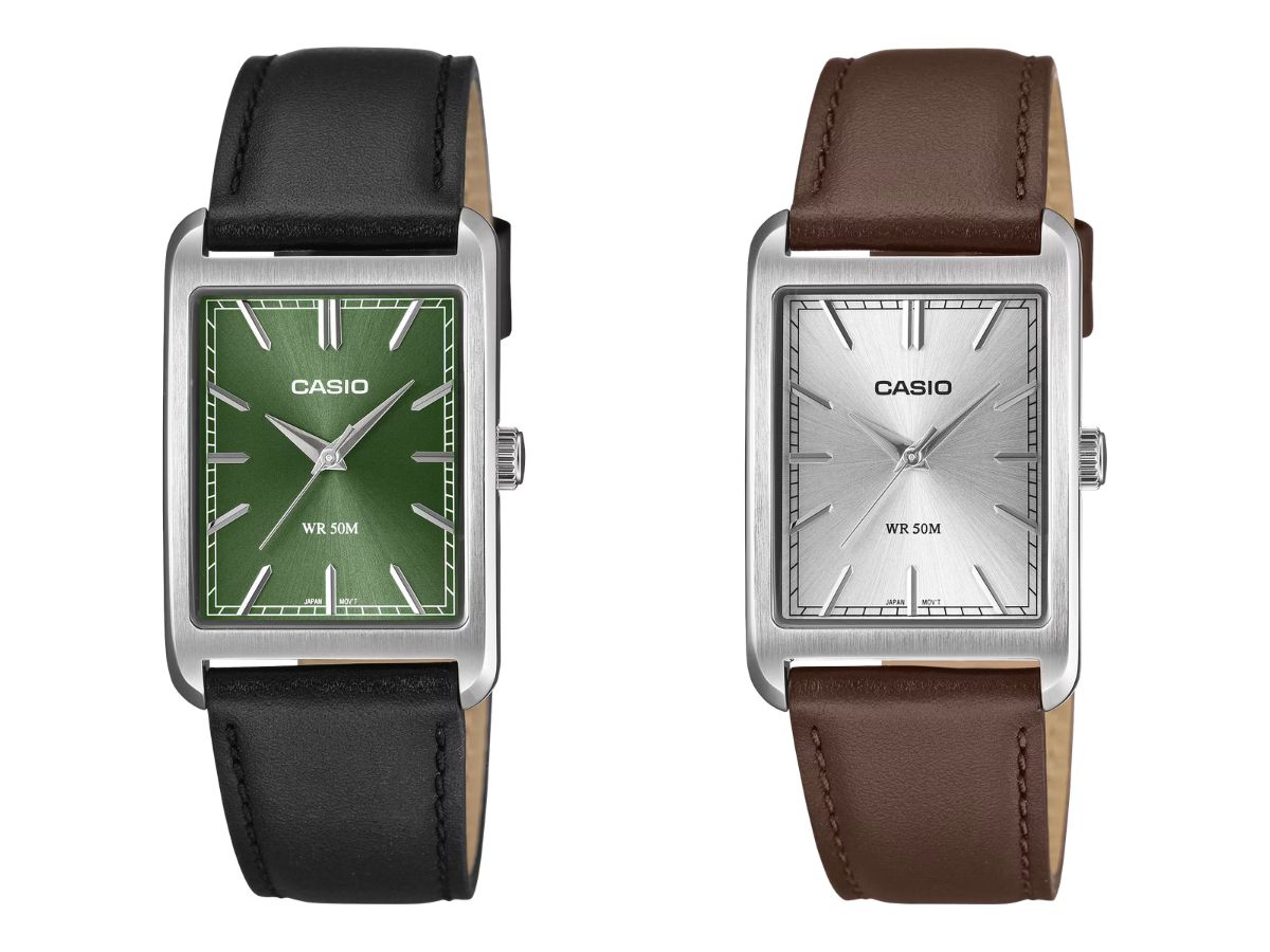 Casio ha presentado seis nuevos relojes MTP-B215que saldrán a la venta en los mercados de todo el mundo. Este modelo analógico tiene un diseño sencillo, con su esfera rectangular de tres agujas e índices de bastón.
