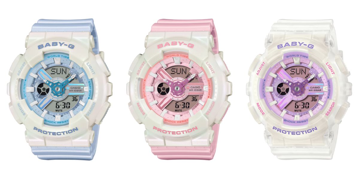Tres nuevos relojes Casio G-Shock de la serie Baby-G BA-100 https://www.casio.com/jp/watches/babyg/product.BA-110PD-2A/ se han lanzado en Japón. También listos para su lanzamiento en otros mercados del mundo, el BA-110PD-2A, el BA-110PD-4A y el BA-110PS-7A tienen diseños en colores pastel, y se comercializan como "altamente prácticos y seriamente funcionales".