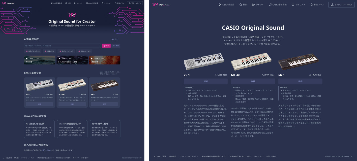 Casio Computer Co., Ltd. ha empezado a vender fuentes de sonido oficiales de tres de sus teclados electrónicos clásicos de los años 80 a través de Waves Place, un servicio de generación de efectos de sonido AI. Los nuevos lanzamientos de https://www.casio.co.jp/release/2026/0324-wavesplace/ incluyen sonidos del Casio VL-1, Casio SK-1 y Casio MT-40. Los tres packs salieron a la venta el 25 de marzo.