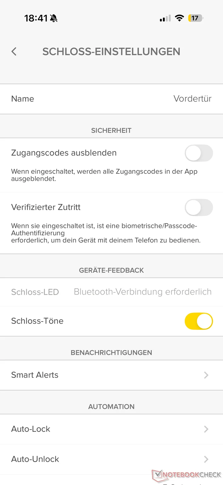 Como alternativa, la cerradura inteligente Linus L2 Lite de Yale puede, por supuesto, bloquearse y desbloquearse a través de la aplicación de Yale. Esto requiere una conexión Bluetooth sin accesorios adicionales y la configuración de Matter. Esto a veces tardó un poco en establecerse en la prueba y también tiene un alcance muy limitado. Por lo tanto, bloquear el Smart Lock a través de la app desde la cama por la noche puede fallar, dependiendo de la distancia. A continuación explicamos en nuestra reseña de la cerradura inteligente Linus L2 Lite de Yale qué otras opciones hay disponibles (incluso en la cartera de accesorios de Yale).