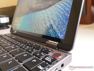Para nuestra sorpresa, las teclas retroiluminadas del teclado son nítidas en retroalimentación con un recorrido relativamente profundo a pesar de su bajo precio y su pequeño tamaño. La disposición del teclado, sin embargo, es muy inusual. Todas las teclas fuera de las principales teclas QWERTY de tamaño completo son comprensiblemente pequeñas y tienen una forma irregular para adaptarse a la limitada superficie disponible. Tardará al menos unos días en escribir antes de que el diseño se convierta en algo natural.