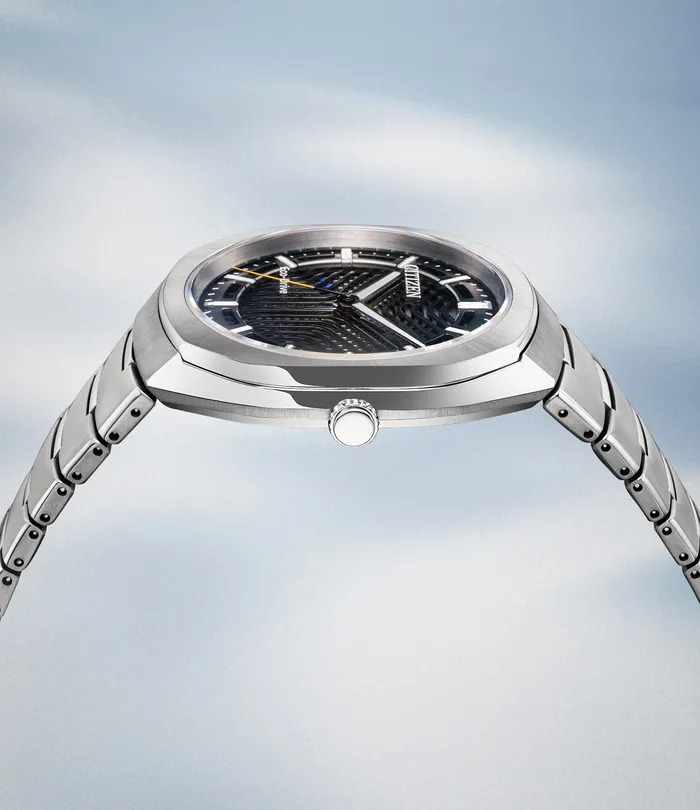 El corazón de este nuevo lanzamiento es la nueva esfera multicapa. Citizen utiliza dos capas metálicas hendidas apiladas una sobre otra, lo que crea un patrón similar a una interferencia. Debajo se encuentra una película de color estructural colocada sobre la célula solar. A medida que la luz pasa a través de las rendijas, la esfera produce colores cambiantes en función del ángulo de visión. Lo que obtendrá es un efecto visiblemente tridimensional que cambia en tiempo real.
