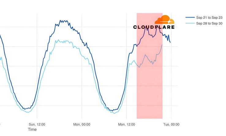 A las 09:00 ET, Cloudflare no observó ningún cambio significativo en la red en su conjunto a pesar de que Verizon había emitido un comunicado en las redes sociales afirmando que la red estaba experimentando problemas. Sin embargo, alrededor de las 11:00 ET, Cloudflare Radar informó de un descenso del cinco por ciento en las solicitudes HTTP, que se hundió aún más hasta alrededor del nueve por ciento durante las tres horas siguientes. Después de que Verizon emitiera un comunicado indicando que los ingenieros estaban haciendo progresos en el problema, las solicitudes HTTP volvieron a la normalidad y superaron el número de solicitudes de la semana pasada alrededor de la misma hora, las 17:15 ET. La red siguió recuperándose, coincidiendo con las declaraciones de Verizon sobre el problema de red resuelto.