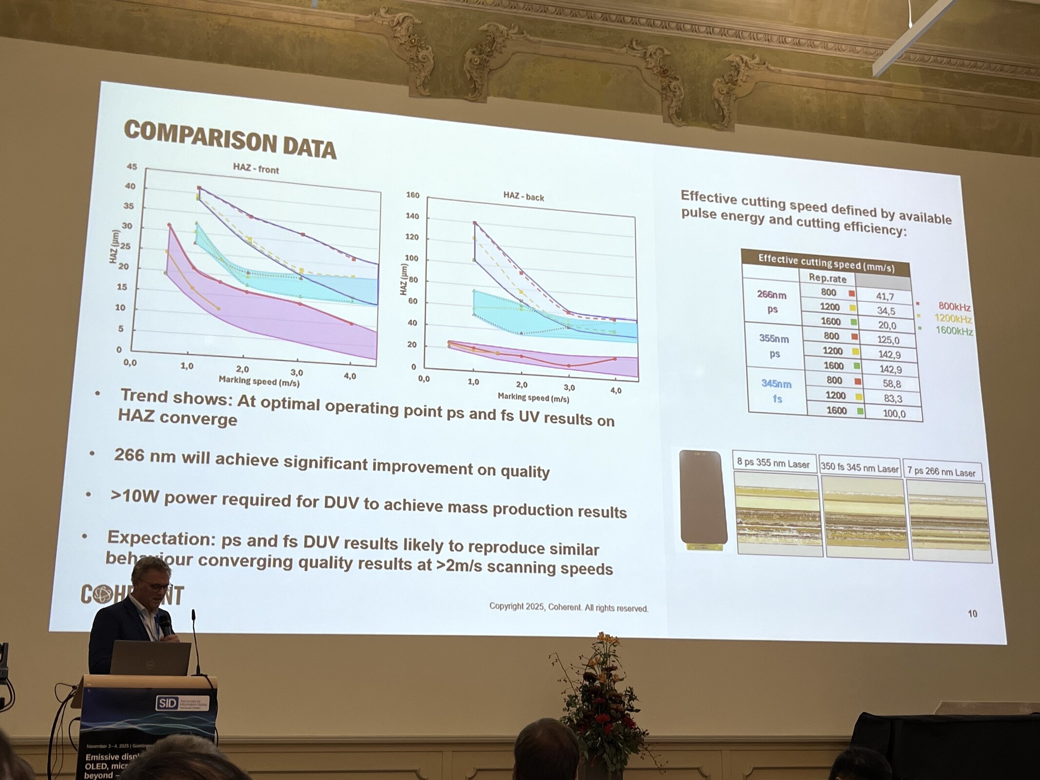 Sin embargo, la producción de pantallas con láser UV profundo tiene algunos inconvenientes. Aún no está preparada para la producción en masa. Los láseres de 10 W disponibles no permiten un corte rápido de las pantallas, lo que encarecería demasiado la producción. Coherent espera láseres de 20W, que deberían hacer posible la producción en masa.