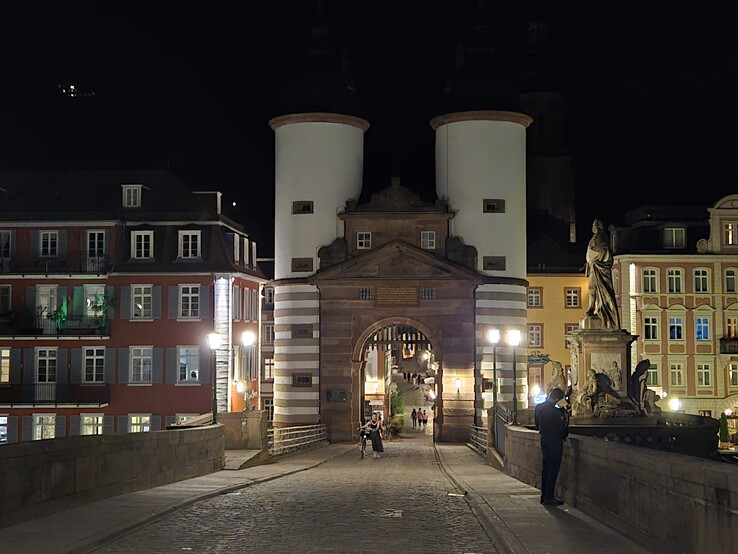 Al atravesar el Neckar, tomamos una foto del casco antiguo y del barrio residencial al otro lado del río desde el puente. El Samsung Galaxy Z Flip6 funcionó notablemente mejor con su cámara: la foto tomada a mano era nítida, detallada y captaba mejor el ambiente nocturno.