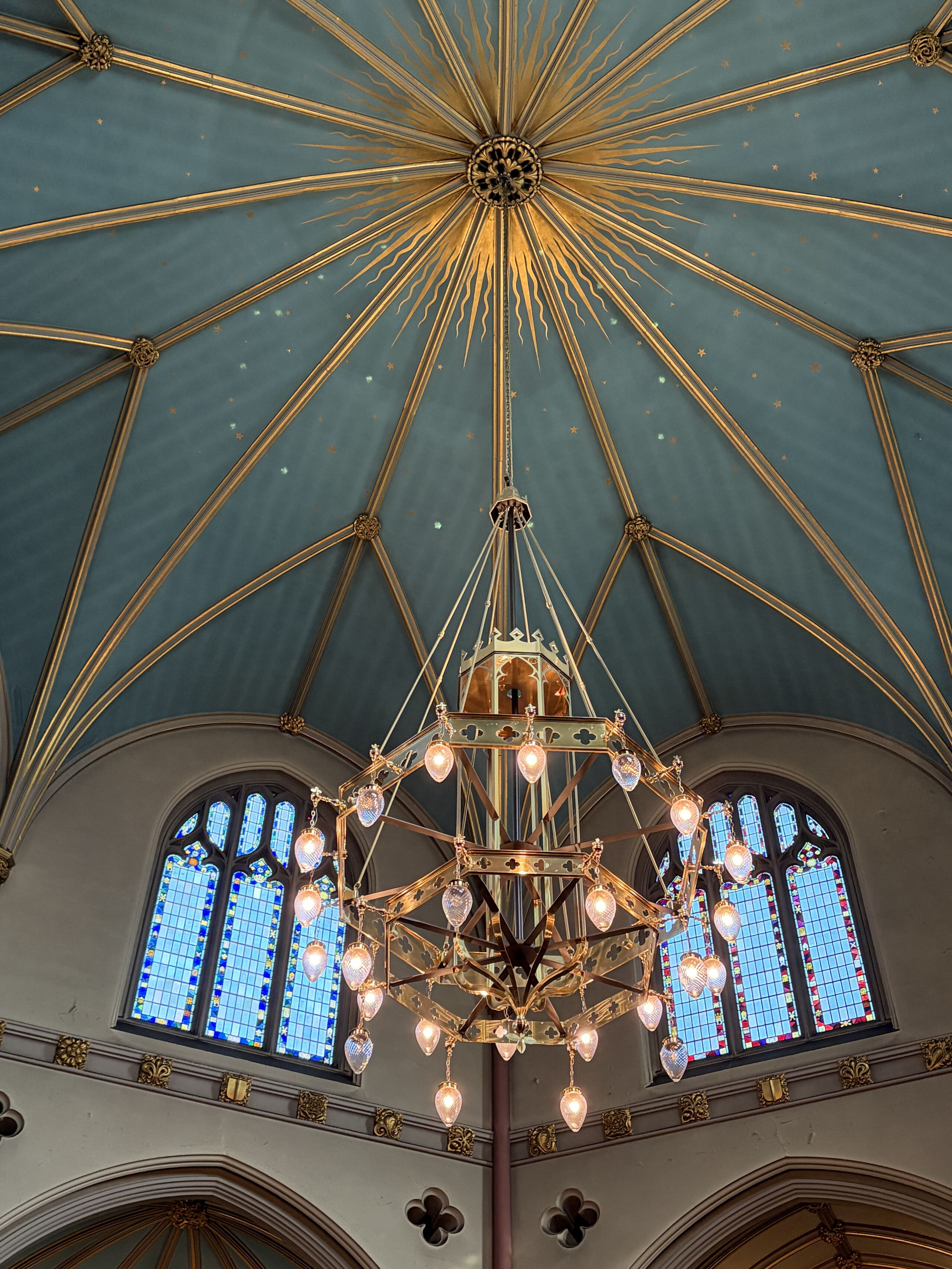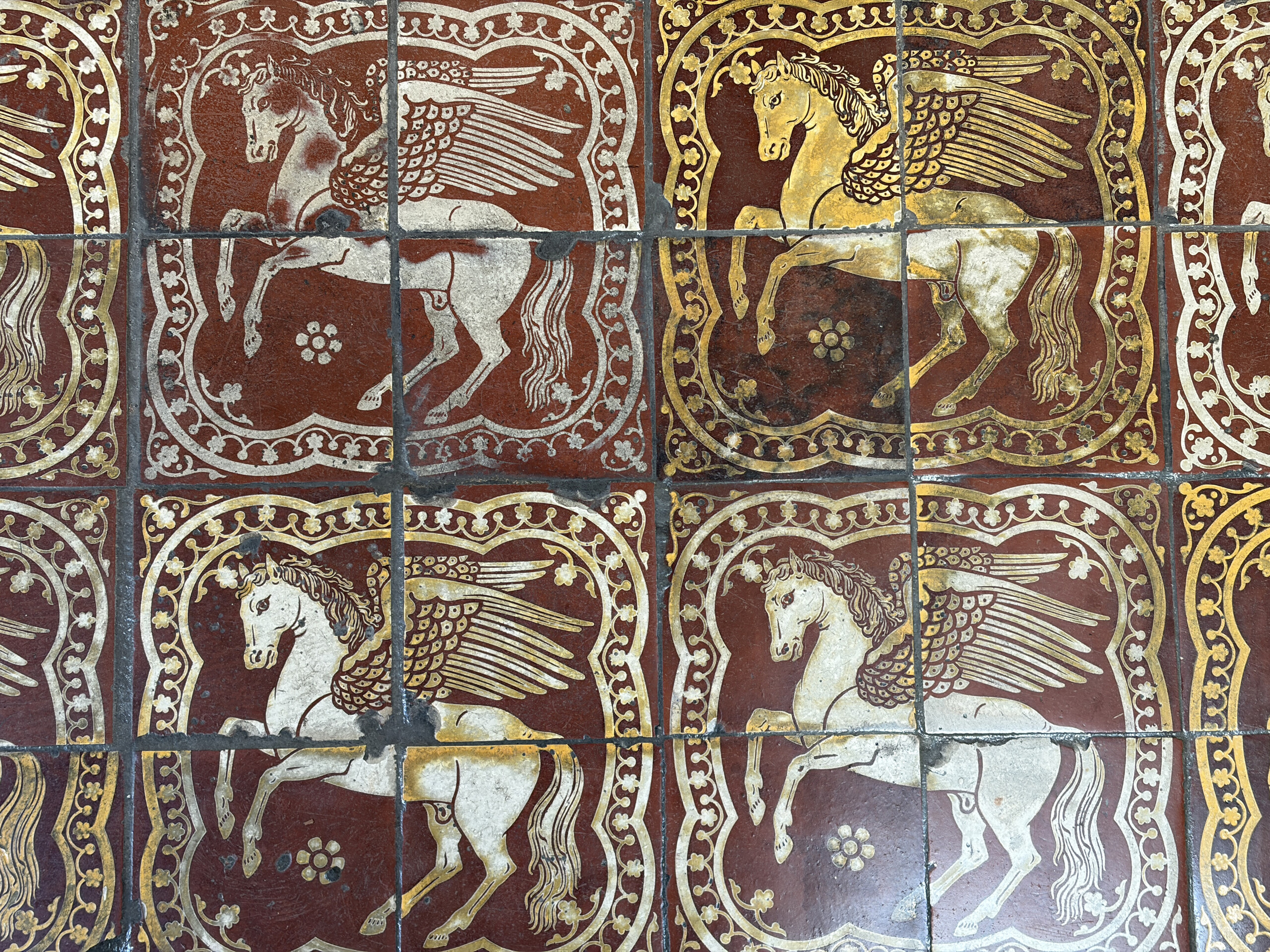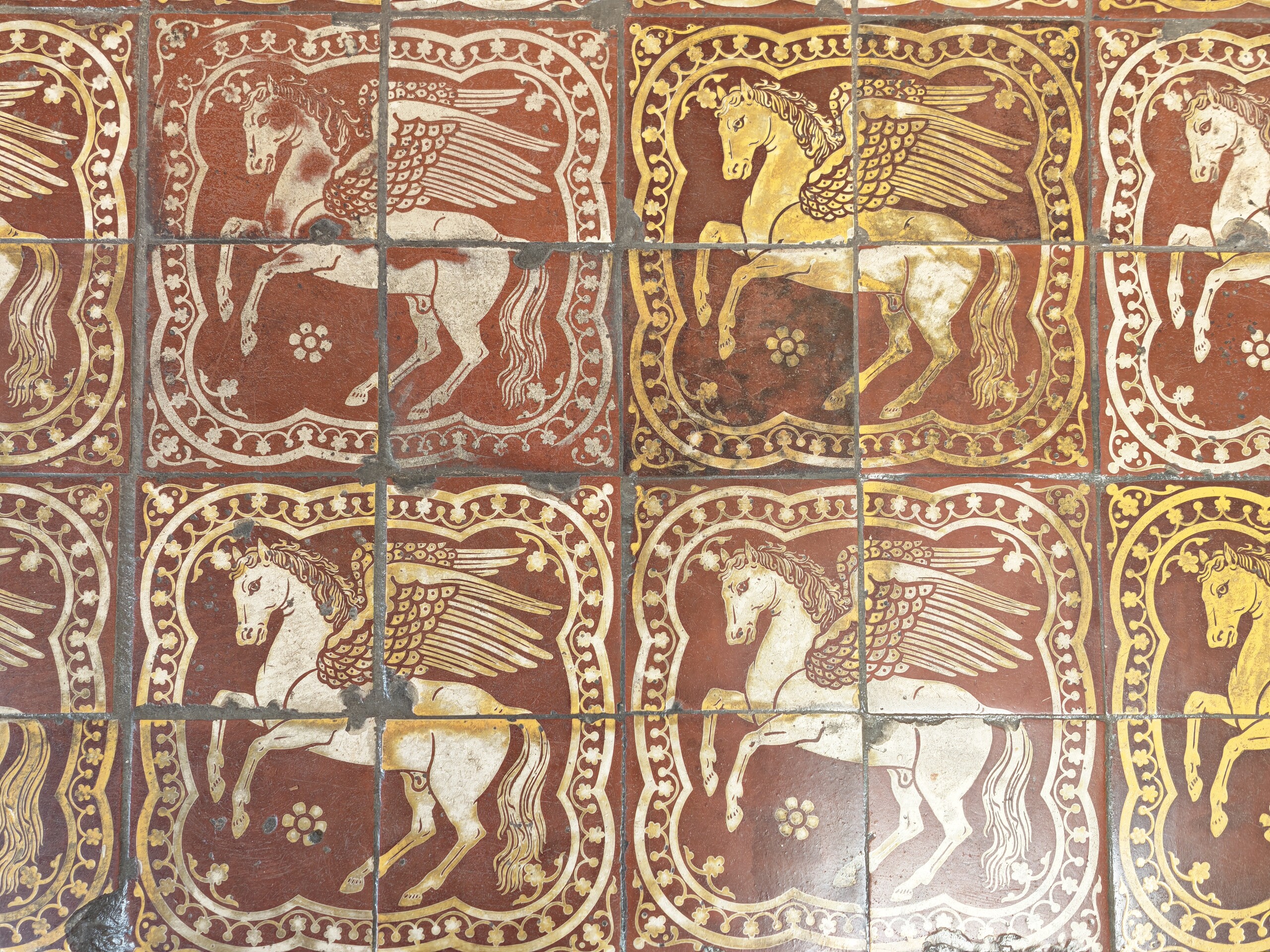 La propia iglesia también es inusual, con su diseño redondo, sus numerosas tumbas de caballeros y una galería decorada con azulejos que representan criaturas míticas y símbolos místicos.