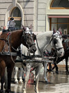 También nos gusta el iPhone 15 Pro Maxde la vista de la torre, ya que parece más espacial. Los dos teléfonos estuvieron a la par al fotografiar las artísticas tejas del tejado de la catedral. Detrás de la catedral, numerosos coches de caballos esperaban a los turistas. Las finas marcas del pelaje del caballo moteado de blanco fueron bien retratadas por ambos teléfonos, aunque aquí también nos gusta más el mayor contraste del iPhone.