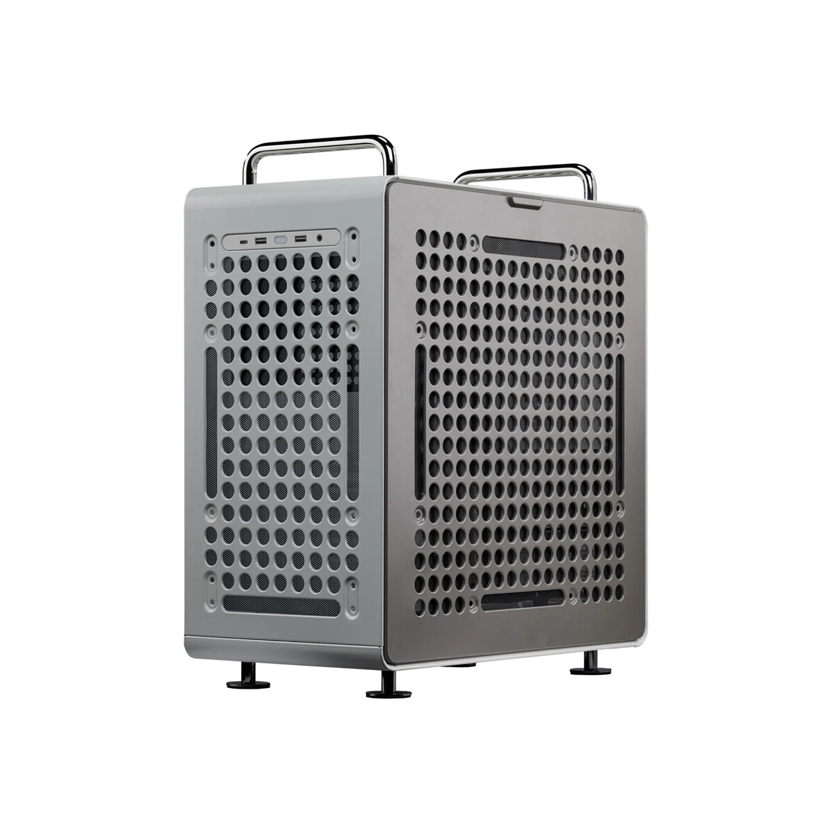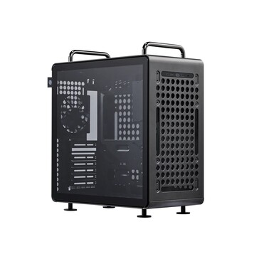 La nueva Cooler Master QUBE 540 se anuncia como una caja para PC muy versátil con un precio relativamente bajo. Sus dimensiones de 42,5 x 42,5 x 22,5 cm la hacen compatible con placas base de los formatos ITX a E-ATX, así como con tarjetas gráficas de hasta 41,5 cm de longitud. Las grandes aberturas circulares de la parte delantera y trasera pueden utilizarse para fijar accesorios directamente a la carcasa.