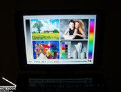 Las mediciones del brillo resultaron en un muy buen máximo valor de 237cd/m en la parte superior media del área de la pantalla, lo que significa una iluminación bastante baja de 74.2%. El valor oscuro fue de 0.21cdm2 en la prueba. El máximo radio de contraste es así un extraordinario 1129:1 - un excelente valor.