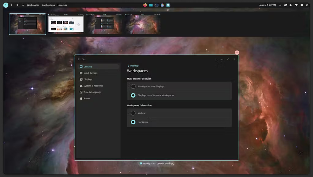 Tras una larga espera y un puñado de retrasos por el camino, System76 ha lanzado finalmente su entorno de escritorio Cosmic escrito en Rust, aunque en forma alfa pública. Cosmic DE lleva la extensión Cosmic Shell basada en Gnome al siguiente nivel con una configuración de sólo gráficos Wayland e híbrida. Filosóficamente, sin embargo, parece que los desarrolladores de Pop!_OS quieren que los usuarios utilicen los applets del dock y el panel para la mayoría de sus necesidades diarias.