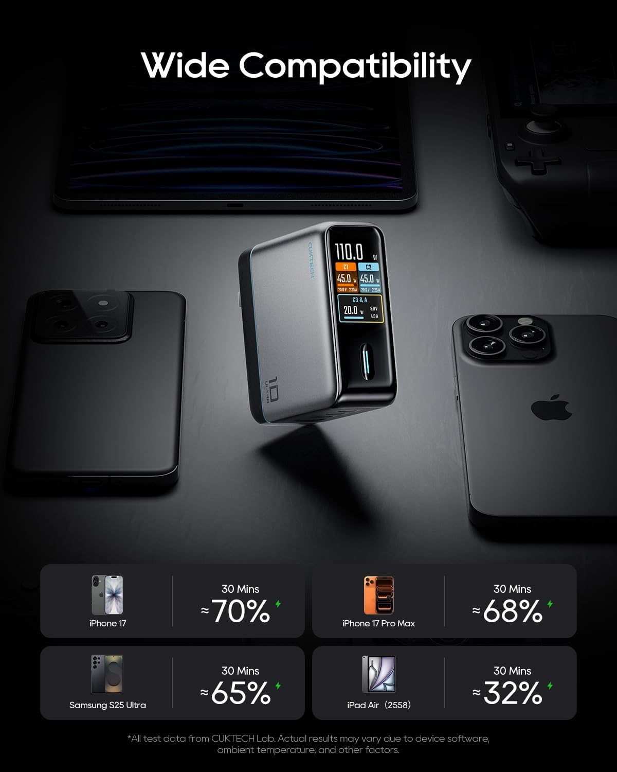 Además, Cuktech ha incorporado un sistema de protección de seguridad de 8 capas en el cargador, protegiéndolo contra sobretensiones, cortocircuitos y otros riesgos eléctricos. Además, es compatible con MacBooks, iPhone serie 17/16, y Galaxy serie S26 a Pixel, y más.