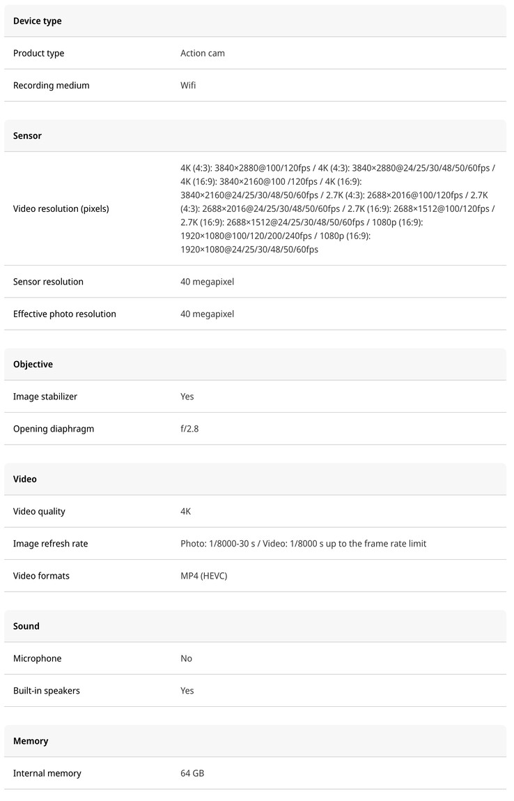 Como era de esperar, el Osmo Action 5 Pro cuenta con un sensor CMOS de 1/1,3 pulgadas que alcanza los 40 MP. En otras palabras, la nueva cámara de acción tiene una resolución nativa 4 veces mayor que el modelo actual de DJI. Dicho esto, la Osmo Action 5 Pro conserva el campo de visión (FOV) de 155° de su predecesora, su apertura de f/2,8 y la captura de vídeo máxima de 4K/120 FPS (16:9). Basándose en las imágenes que aparecen a continuación, DJI pondrá a la venta la Osmo Action 5 Pro por 379 euros, lo que supone un aumento del 26% respecto al precio de venta recomendado de 299 euros de la Osmo Action 4