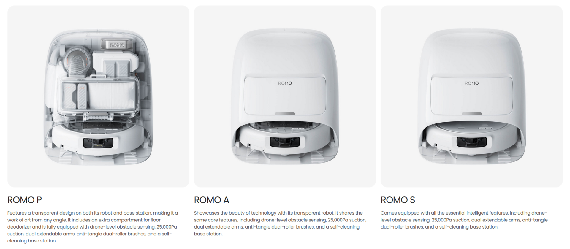 Romo se envía a partir de hoy (28 de octubre) a través de store.dji.com y distribuidores autorizados en tres acabados: Romo S (1.299 euros, ~1.511 dólares), Romo A (1.599 euros, ~1.860 dólares), y Romo P (€1,899, ~$2,210). El modelo P añade ventanas transparentes en la unidad y la base, además de una cámara dispensadora adicional para limpiadores concentrados o esencia para suelos. Los accesorios oficiales incluyen cepillos de repuesto, una rampa para umbrales de 4 cm y una solución limpiadora de arranque.