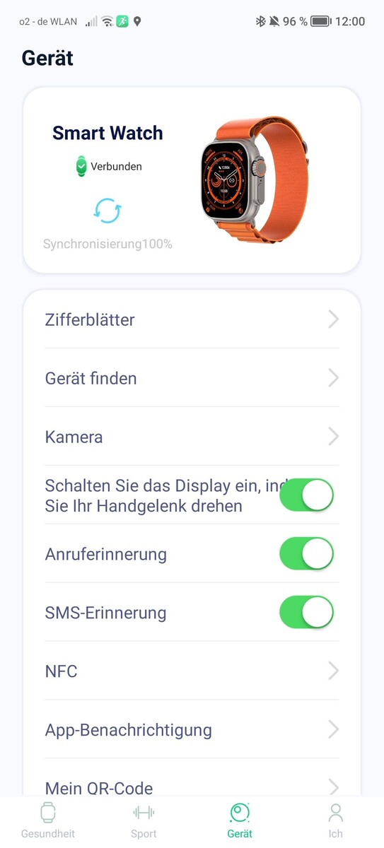 La aplicación WearPro es necesaria para configurar y utilizar el reloj inteligente. El programa está disponible tanto para dispositivos Android como iOS. Tras la instalación, el software busca dispositivos disponibles en las proximidades, y el DT8 Ultra fue reconocido y emparejado inmediatamente. Después, hay que conceder a la aplicación algunos derechos para que pueda enviar notificaciones y llamadas telefónicas al reloj, por ejemplo.