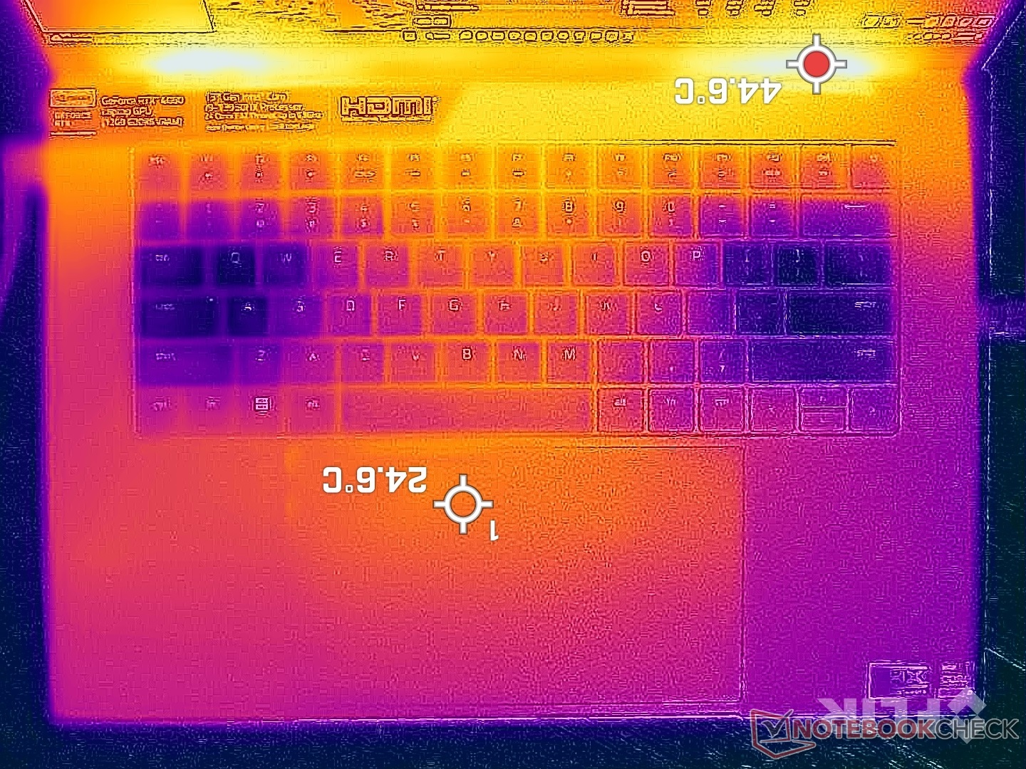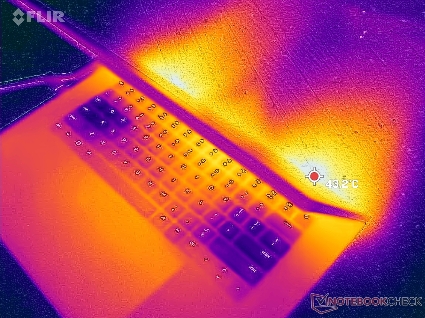 (+) Jugando a The Witcher 3, la temperatura media de la parte superior es de 31.8 °C / 89 F, frente a la media del dispositivo de 33.9 °C / 93 F.