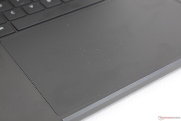 Cuando Razer presentó el modelo más grande de 17,3 pulgadas Blade Pro o Blade 17, nos sorprendió ver que su teclado era exactamente del mismo tamaño que el del Blade 15 de 15,6 pulgadas. Para el Blade 16, el fabricante ha aumentado finalmente la superficie de 13 x 8 cm del Blade 15/17 a unos superespaciosos 17 x 9,7 cm. Los controles del cursor y las entradas multitáctiles son por tanto más fáciles, pero la respuesta al pulsar sigue siendo esponjosa, similar a los modelos Blade existentes o al Dell XPS 15/17. Si encuentras la respuesta del clickpad en el Blade 15 o 17 demasiado suave, entonces el clickpad del Blade 16 no te parecerá diferente.