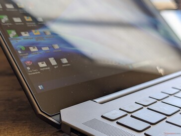 La colocación de los puertos podría haber sido mejor. En particular, los dos puertos USB-C están en el mismo lado del sistema, lo que significa que las estaciones de carga y acoplamiento deben conectarse en el mismo lado del portátil. En comparación, el Razer Blade 14 y el XPS 14 tienen puertos USB-C a ambos lados de sus respectivos diseños para mayor libertad y comodidad.